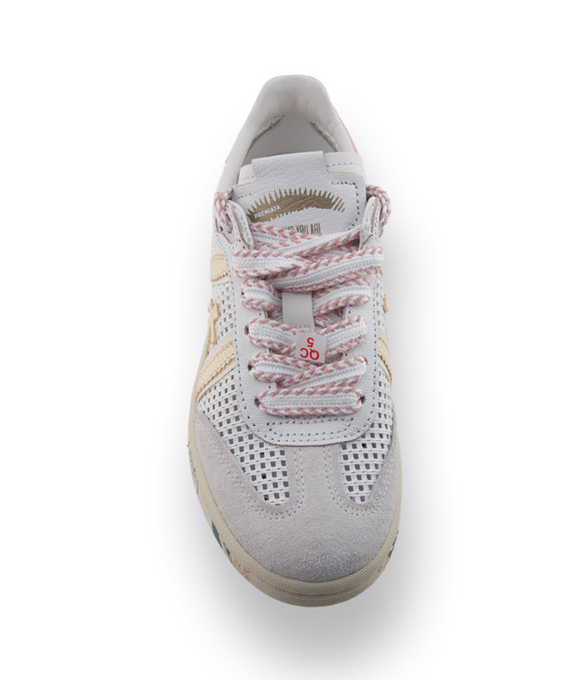 Premiata Sneaker Modell Bonnie D in weiß mit Pastelltönen, gelocht