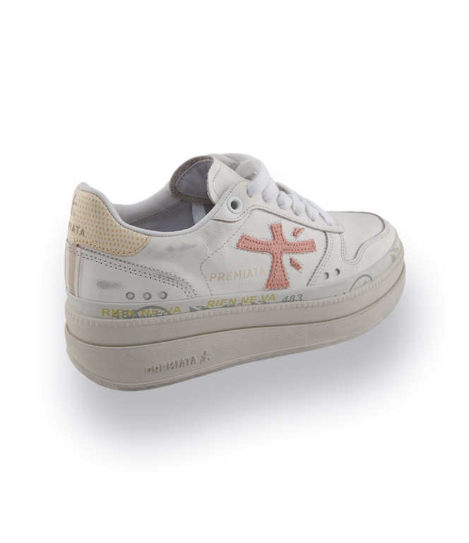 Premiata Sneaker Modell Micol in weiß mit Pastelltönen, Plateau