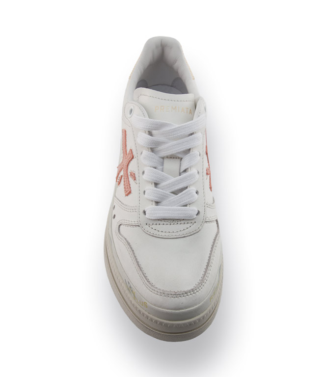 Der Premiata Sneaker Micol ist ein traumhaft leichter Sommerschuh in frischem Weiß mit zarten Pastelldetails in Rosa und Hellgelb. Das hochwertige Vintage-Glattleder verleiht dem Modell eine edle, leicht lässige Note und macht ihn zum vielseitigen Begleiter für moderne City-Looks.