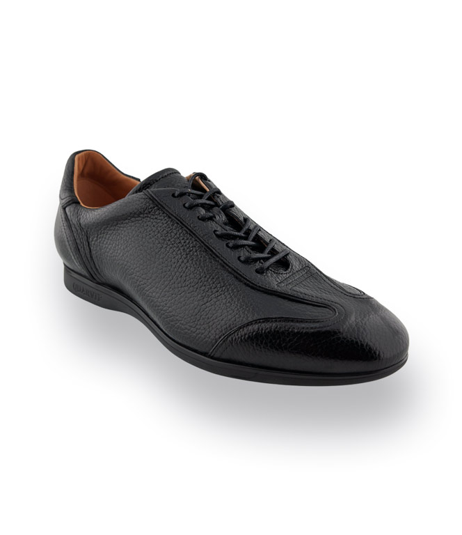 Der Quarvif Edelsneaker aus Italien vereint erstklassige Materialien und exzellente Verarbeitung. Das geprägte Kalbsleder in klassischem Schwarz wirkt edel und modern zugleich und macht den Sneaker zum universellen Begleiter für jede Gelegenheit. Dank der perfekten Passform und dem hochwertigen Lederfutter ist höchster Tragekomfort garantiert – das ganze Jahr über. Die weiche Gummisohle und die herausnehmbare Innensohle sorgen für zusätzlichen Komfort und Flexibilität. Nicht zu sportiv, sondern stilvoll und elegant, passt dieser Sneaker sowohl zur Jeans als auch zum Anzug. Ein Schuh für anspruchsvolle Genießer, die Qualität und Vielseitigkeit schätzen.