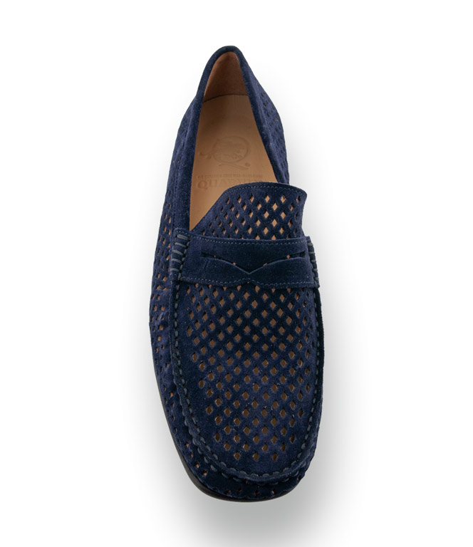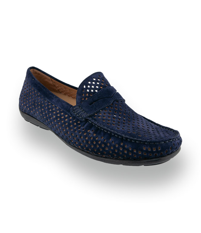 Dieser exquisite Mokassin verzaubert durch seine filigrane Stanzung, die für eine wohltuende Frische sorgt und das Barfußtragen besonders angenehm macht. Das hochwertige Veloursleder schmiegt sich sanft an Ihren Fuß an, während die durchgenähte Verarbeitung eine meisterhafte Langlebigkeit garantiert. Dank der flexiblen Sohle genießen Sie eine unbeschwerte Leichtigkeit bei jedem Schritt. Ein stilvolles Schmuckstück, das italienische Eleganz und luftigen Komfort vereint.