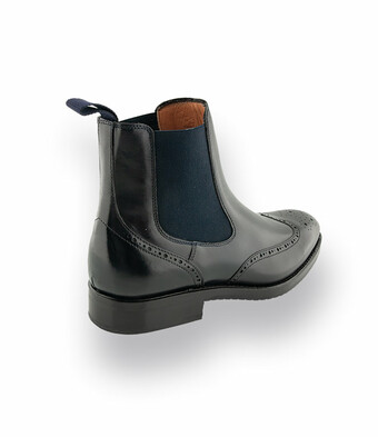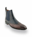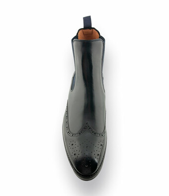 Chelseaboots mit klassischer Lochlyra von Quarvif aus blauem Kalbsleder setzt frische Akzente.