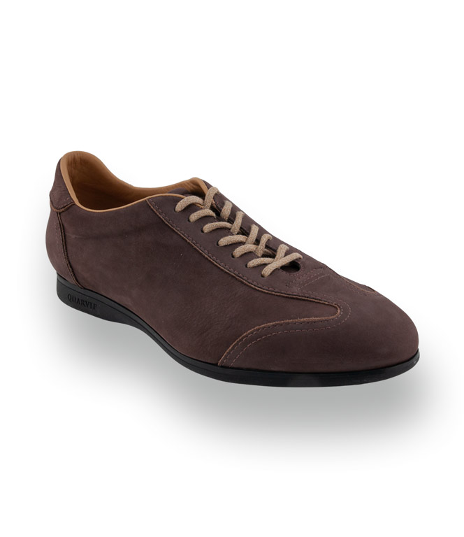 Ein glanzvoller Begleiter für stilbewusste Alltagstage voller Klasse! Dieser exquisite Sneaker von Quarvif besticht durch sein braunes Nubukleder, das durch die hellen Paspelierungen modisch veredelt wird. Die italienische Handwerkskunst sorgt für eine optimale Passform und macht pure Lust auf elegante Auftritte im Büro oder in der City. Dank der weichen Gummisohle genießen Sie ein unvergleichlich freies Tragegefühl bei jedem Schritt. Das harmonische Design garantiert einen stilsicheren Auftritt und vereint sportliche Lässigkeit mit maximalem Komfort meisterhaft.