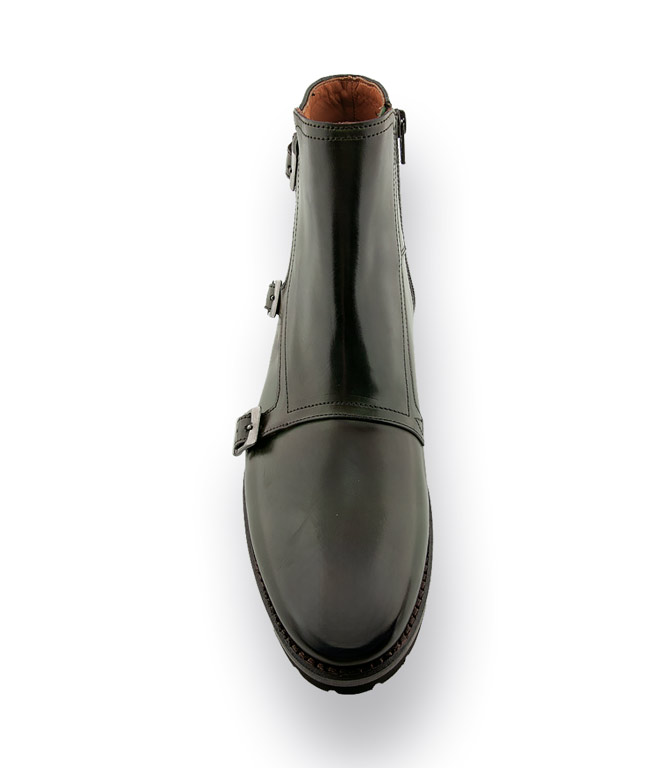 Grüner Boots aus Kalbsleder von Quarvif ist ein stilsicherer Begleiter für höchste Ansprüche. Die rahmengenähten Schuhe bekommen durch die drei Schnallen einen sportlichen Charakter. Lederfutter und eine extraleichte Gummisohle mit Profil sorgen für besten Tragekomfort. Die Boots sind modisch und zeitlos zugleich. Quarvif für Männer mit hohen Ansprüchen. Quarvif - Rahmengenähte Schuhe aus Meisterhand. Quarvif steht für hochwertige Arbeit.