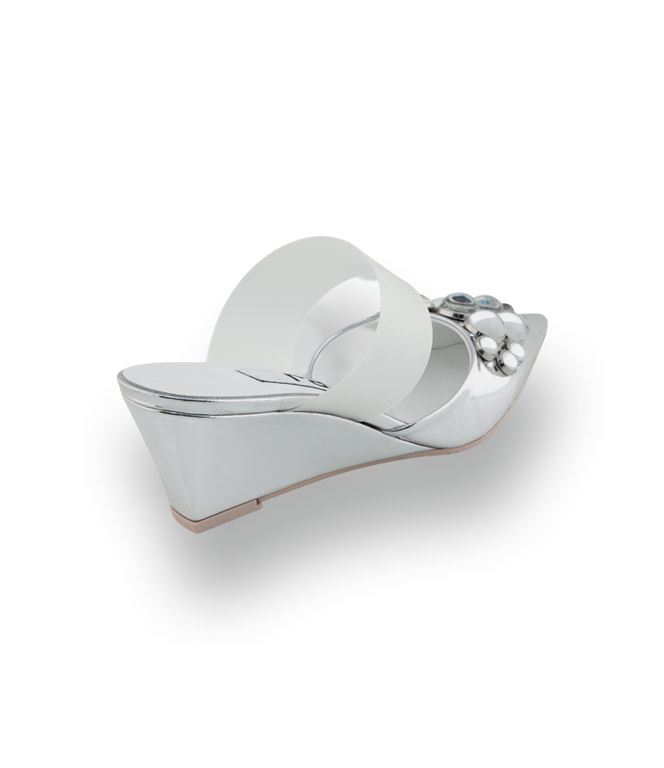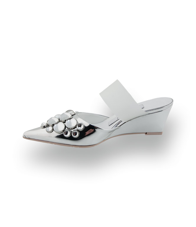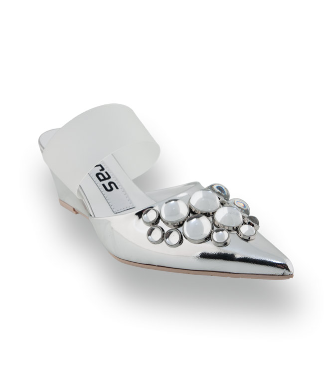 RAS Pantolette in Silber mit Schmuckkugeln – Extravaganter Keilabsatz