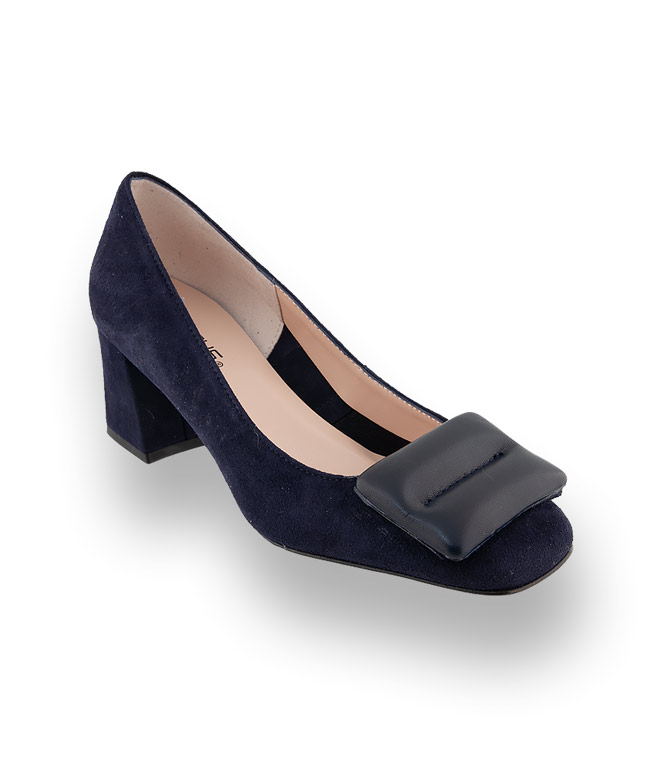 Stylisch und clean präsentiert sich der blaue Pumps von Status. Weiches Veloursleder und trendiges Karree sprechen für sich. Eine markante Lederbrosche peppt den edlen Look. Der breite Absatz und die Lederlaufsohle machen aus dem Klassiker einen bequemen Allrounder.
