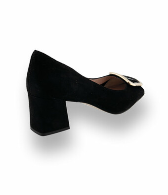 Status Pumps in schwarz velours mit goldfarbener Brosche