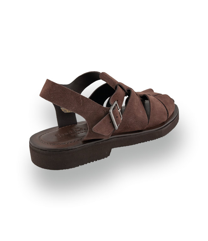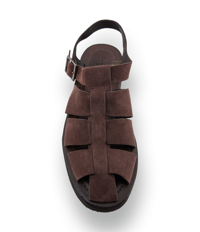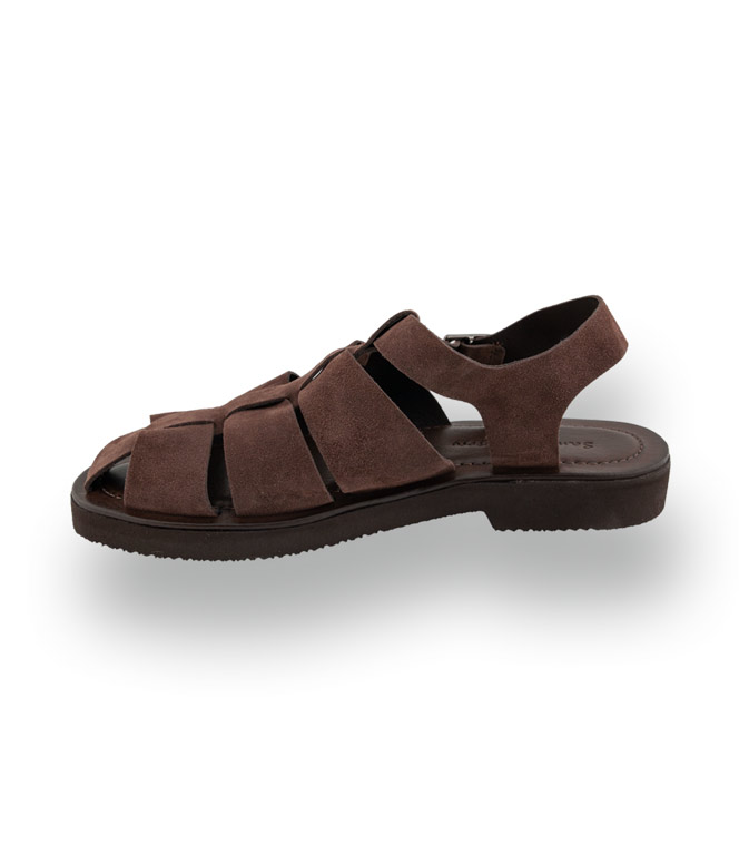 Herren-Halbsandale aus braunem Veloursleder mit vier Riemen