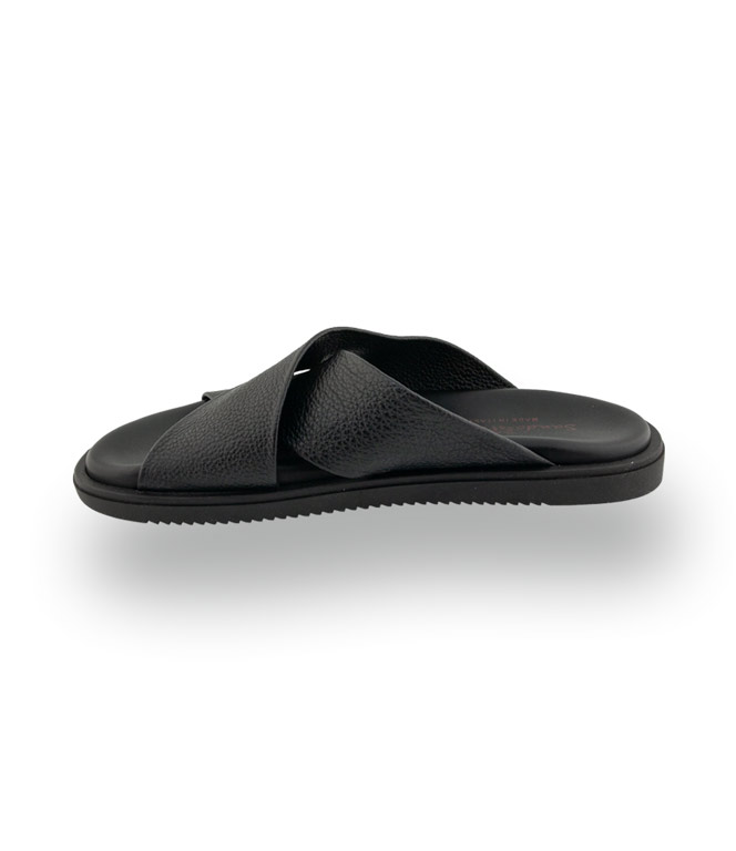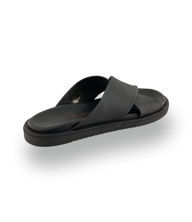 Diese exquisite Pantolette von The Sandals Factory besticht durch ihr hochwertiges genarbtes Leder in tiefem Schwarz, das durch die raffinierte Kreuzbandage sportlich veredelt wird. Die italienische Handwerkskunst sorgt für eine perfekte Passform und macht pure Lust auf entspannte Urlaubstage in Shorties. Dank der superleichten Gummisohle und dem weichen Lederfutter genießen Sie ein unvergleichlich freies Tragegefühl bei jedem Schritt.