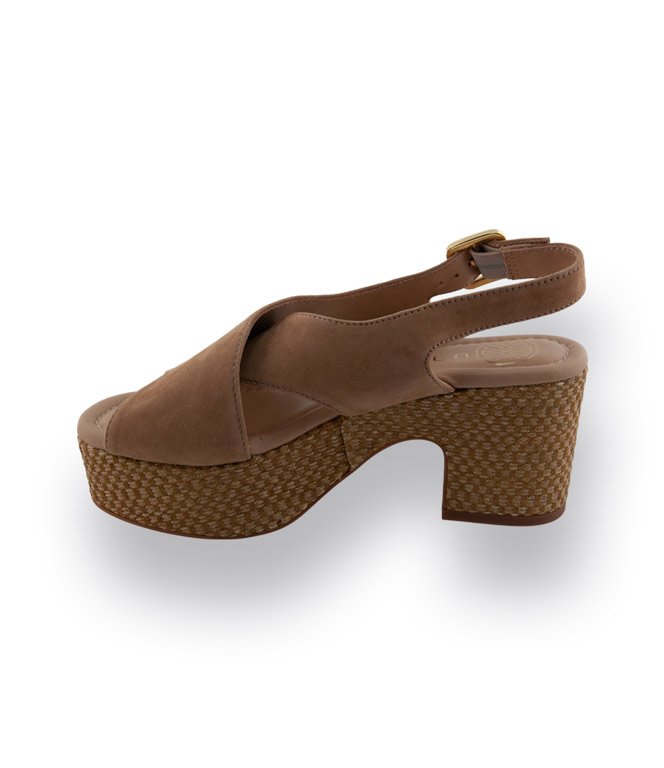 - Material: Velours und Absatz und Plateau mit Bast überzogen