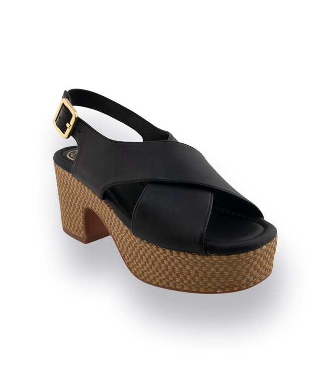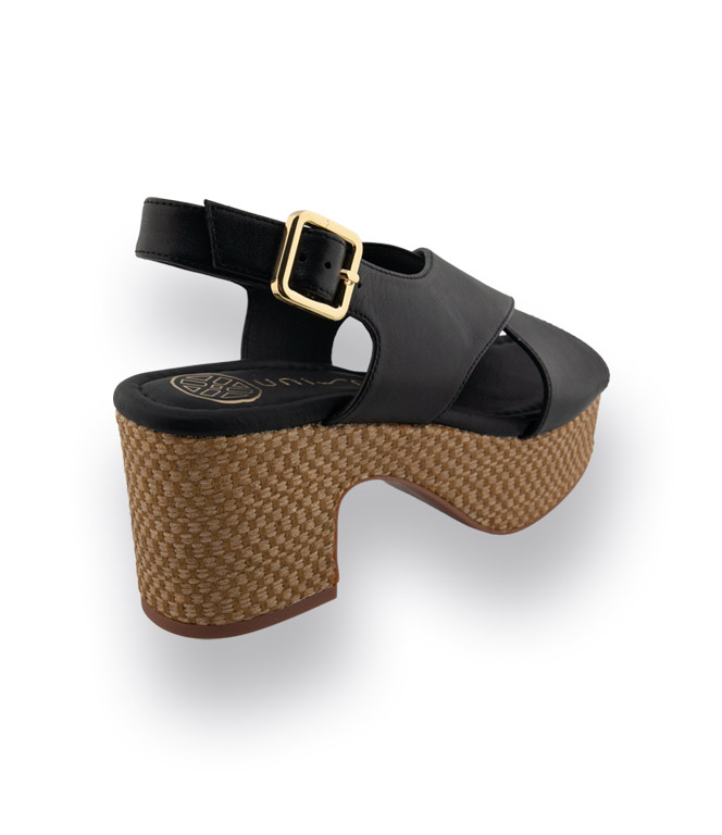 Unisa Modell Kaifu Sandalette in schwarz mit Bast überzogener Platau