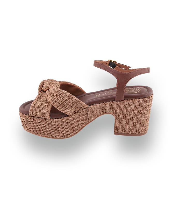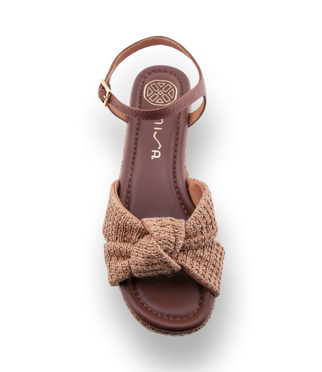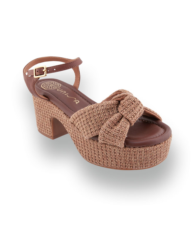 Unisa Kasis - Exklusive Plateau-Sandale aus Naturbast mit braunem Leder