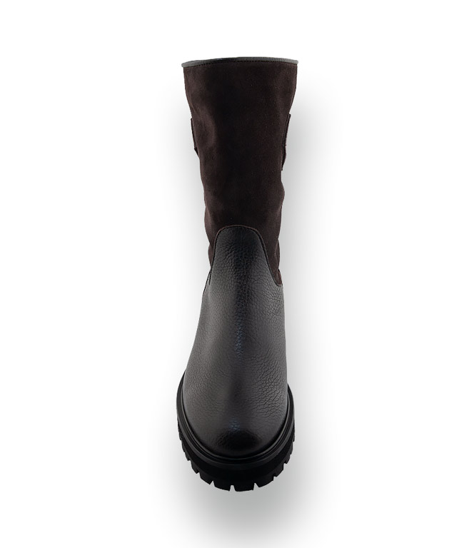 Der Maronibrater von Viamercanti in Braun verbindet Klassik mit wohliger Wärme. Das geprägte Glattleder und der Abschluss aus Velours verleihen dem Stiefel einen edlen Look, während das Innenfutter aus echtem Lammfell garantiert warme Füße auch bei eisigen Temperaturen bietet. Die leichte Vibram-Gummisohle sorgt für guten Halt, der ca. 3 cm hohe Absatz und die Schafthöhe von ca. 24 cm bieten optimalen Komfort im Alltag. Ob beim Winterspaziergang oder in der Stadt – dieser Stiefel ist der perfekte Begleiter für die kalte Saison. Gut imprägniert macht er jedes Winterabenteuer mit.