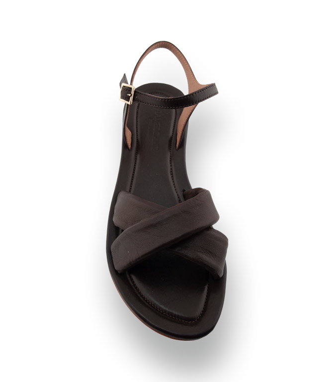 Viamercanti - Edle Nappa-Sandale mit Kreuzbandage in Dunkelbraun