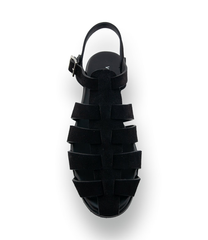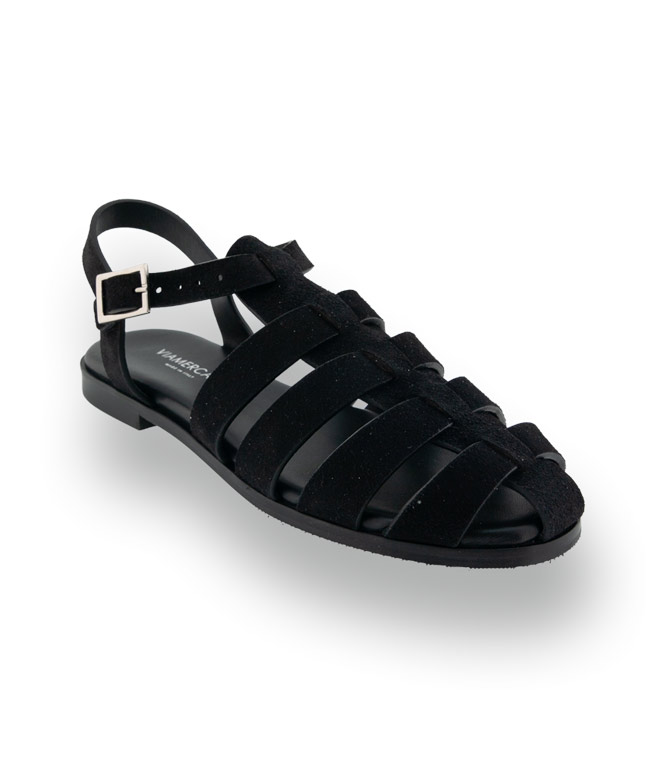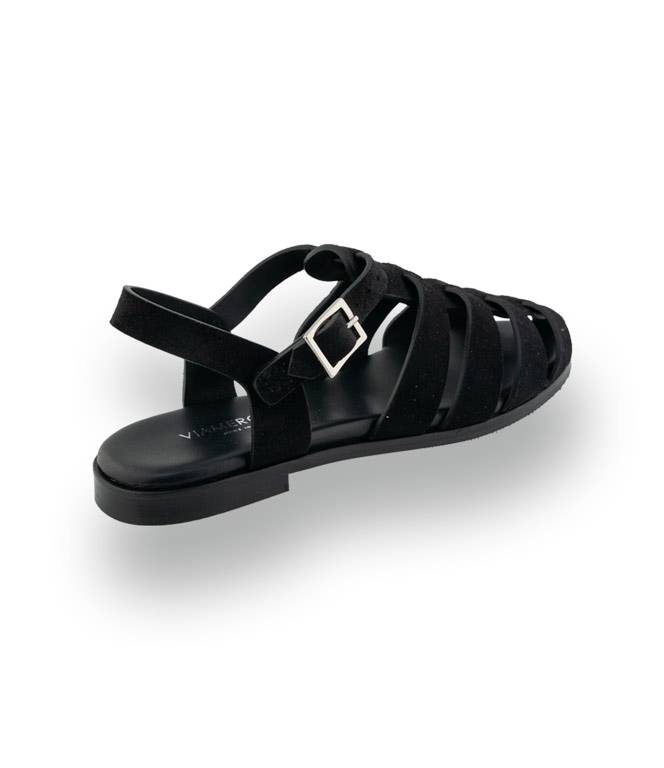 Viamercanti - Fersenfreie Fisherman Sandale in schwarzem Veloursleder