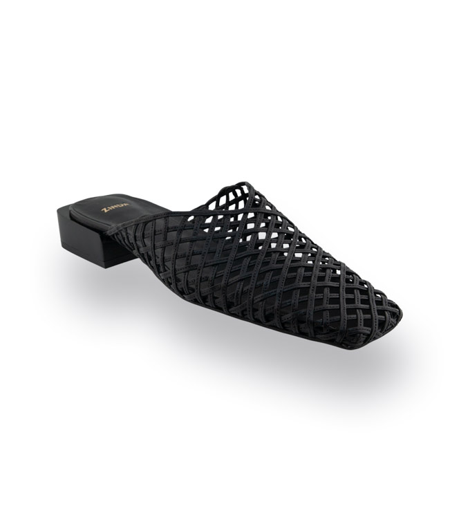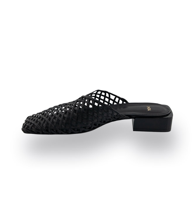 Zinda Mule in schwarz mit Cutouts, Karree