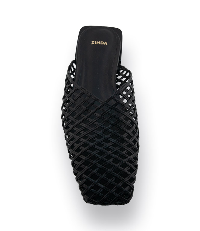 Zinda aus Spanien steht für topmodische Damenschuhe in hochwertiger Qualität. Dieser schwarze Zinda Mule begeistert mit einer besonderen Form: vorne geschlossen und höher geschnitten, bietet sie sehr guten Halt und eine ausgezeichnete Passform. Feine, geflochten wirkende Riemchen bilden ein schönes Muster mit dekorativen Cutouts – luftig wie eine Sandale, aber dennoch geschlossen. Das weiche Glattleder und das ledergefütterte Innenleben sorgen für angenehmen Tragekomfort. Die Kunststoffsohle und der ca. 3 cm hohe, glänzende und unempfindliche Absatz machen das Modell alltagstauglich.