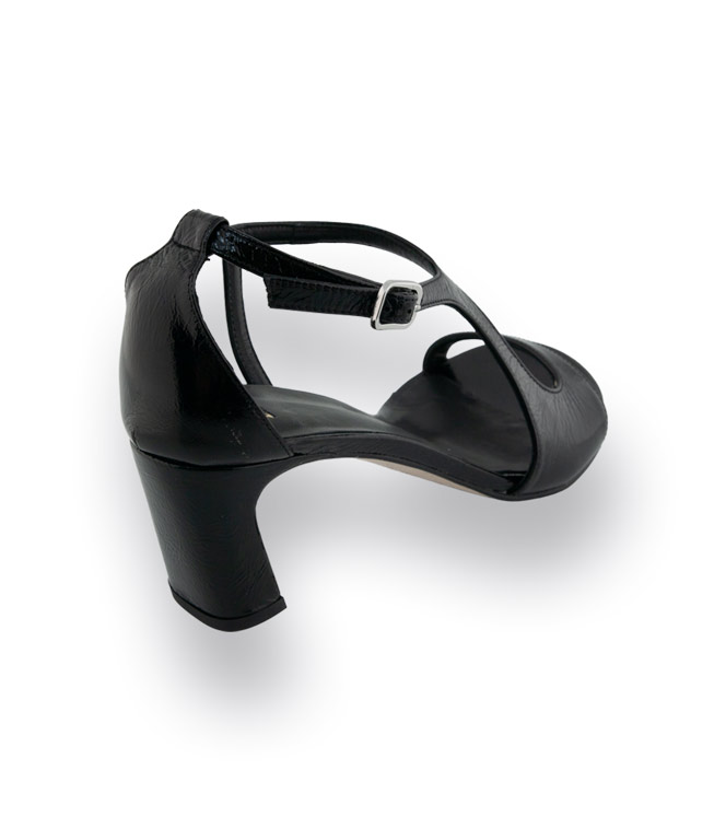 Diese elegante Zinda Sandale aus glänzendem schwarzem Lackleder verbindet stilvolles Design mit perfekter Passform. Das charakteristische Schrägband und die geschlossene Ferse sorgen für hervorragenden Halt und umschließen den Fuß sicher, ohne einzuengen. Die zarten Riemchen unterstreichen die feminine Linie und machen den Schuh zum idealen Begleiter für besondere Anlässe oder den gepflegten Alltagslook. Das weiche Lederfutter bietet angenehmen Tragekomfort. Mit ihrem ca. 6 cm hohen Absatz wirkt die Sandale elegant und dennoch alltagstauglich – ein zeitloser Klassiker für viele Outfits.