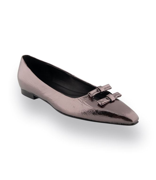 Der ausgefallene Ballerina in edlem graumetallic Leder wird sie begeistern. Leichtes Karree und verspielte Schleifen sorgen für einen Wow-Effekt. Verspielte Details wie das Cutout, machen den Romantiklook perfekt. Wunderschön zu leichten Seiden- oder Chiffonkleidern.