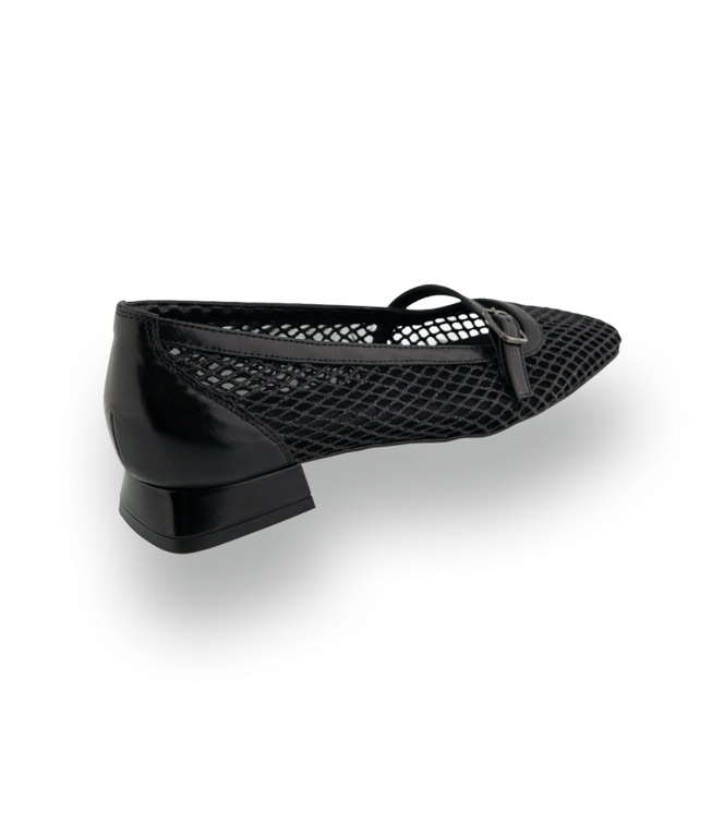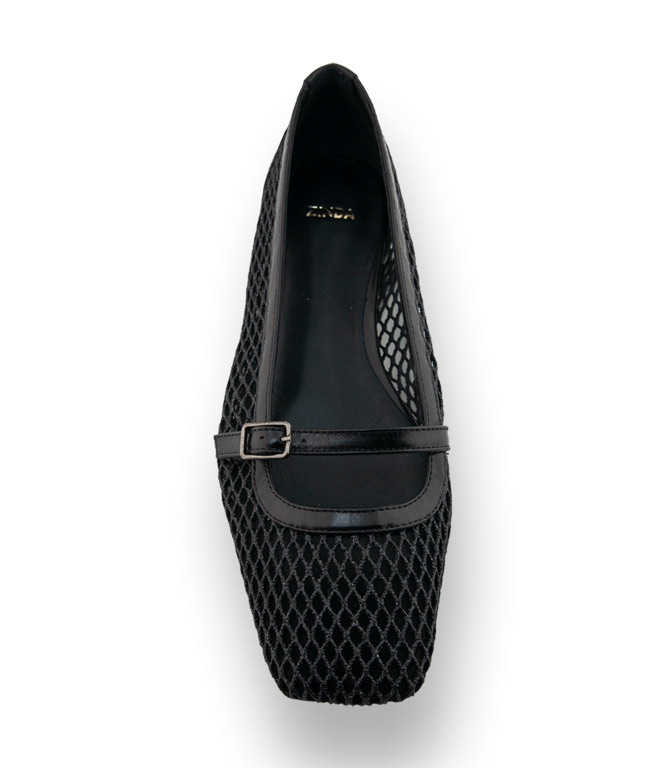 Zinda Mary-Jane Ballerina in Schwarz in Mesh-Optik
